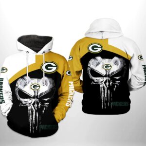 Green Bay Packers Nfl Skull Punisher Team 3D All Over Print Zip Up Hoodie Option