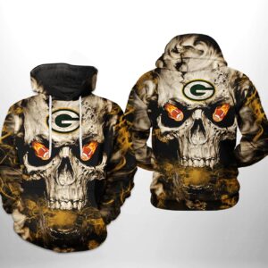 Green Bay Packers Nfl Skull Team 3D All Over Print Zip Up Hoodie Option