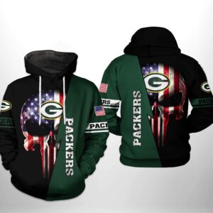 Green Bay Packers Nfl Us Flag Skull Team 3D All Over Print Zip Up Hoodie Option