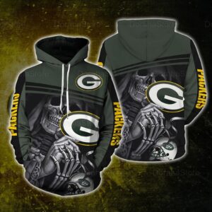 Green Bay Packers Nfl Football Skull Hold Logo 3D All Over Print Hoodie With Zipper