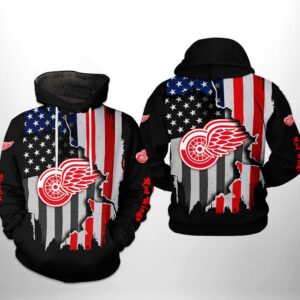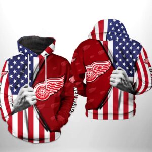 Detroit Red Wings Hoodie Us Flag 3D Hoodie Zip Hoodie, Nhl 3D All Over Print Hoodie Zip Hoodie