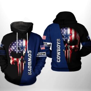 Dallas Cowboys Nfl Us Flag Skull Team 3D All Over Print Zip Up Hoodie Option