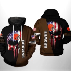 Cleveland Browns Nfl Us Flag Skull Team 3D All Over Print Zip Up Hoodie Option