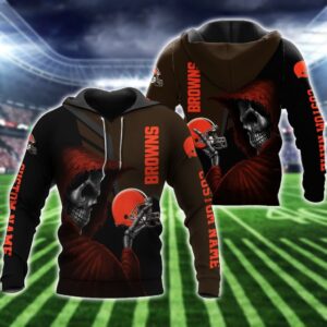 Cleveland Browns Nfl Skull 3D Printed Pull Over Hoodie, Zip Up Hoodie