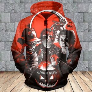 Cleveland Browns Horror Movie Characters Men And Women 3D Hoodie Shirt Cleveland Browns Nfl Custom 3D Zip Up Hoodie