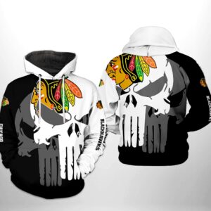Chicago Blackhawks Nhl Tribal Skull 3D All Over Print Zip Up Hoodie