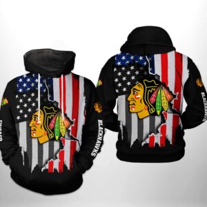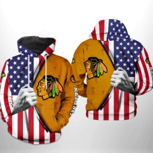Chicago Blackhawks Us Flag Team 3D All Over Print Zip Up Hoodie