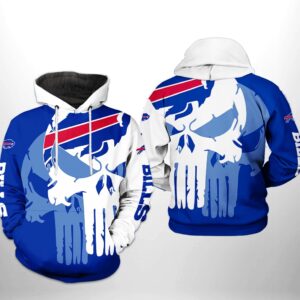Buffalo Bills Nfl Skull Punisher Team 3D All Over Print Hoodie With Zip Up Option