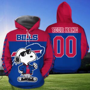 Custom Buffalo Bills Snoopy 3D All Over Print Zip Hoodie With Name And Number