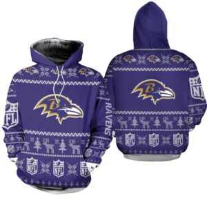 Custom Baltimore Ravens Ugly Sweatshirt Christmas 3D All Over Print Zip Hoodie Perfect Gifts For Football Fans