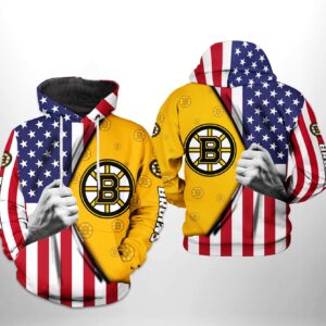Custom Boston Bruins Nhl Usa Flag Unisex 3D All Over Print Zip Up Hoodie Perfect Gift For Hockey Fans