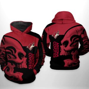 Arizona Coyotes Nhl Skull Printed Hoodie Zip Up Or Pullover