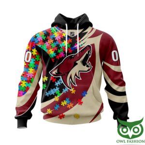 Customizable Autism Awareness Arizona Coyotes Hoodie With Colorful Puzzle Design And Personalized Name And Number
