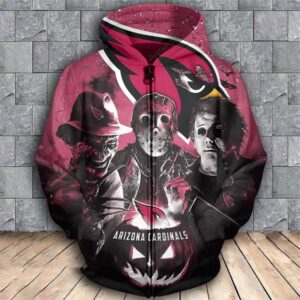 Arizona Cardinals Horror Movie Characters 3D All Over Print Zip Up Hoodie Great Gift