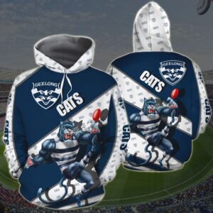 Customized 3D Printed Geelong Football Club Hoodie With Mascot Kc Afl Zip Up Hoodie