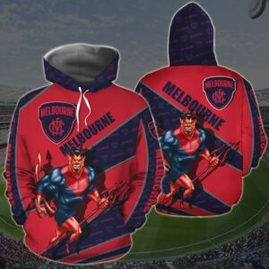 Customized 3D Printed Melbourne Football Club Hoodie With Mascot Kc Afl Zip Up Hoodie