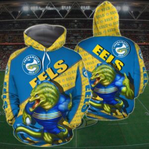 Customized 3D Printed Parramatta Eels Hoodie With Mascot Kc Nrl Hoodie