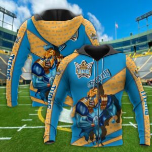 Customized 3D Printed Gold Coast Titans Hoodie With Mascot Kc Nrl Zip Up Hoodie