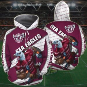 Personalized 3D All Over Printed Manly Warringah Sea Eagles Hoodie Nrl Zip Up Hoodie