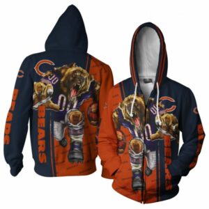 Chicago Bears Zip Up Hoodies Mascot 3D Ultra Cool Gifts for Fans