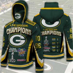 Green Bay Packers Hoodies Mens 4 Times Super Bowl Champions Gifts for Fans