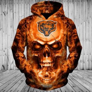 NFL Hoodies 3D Skull Chicago Bears Hoodie Zip Up, Pullover Gifts for Fans