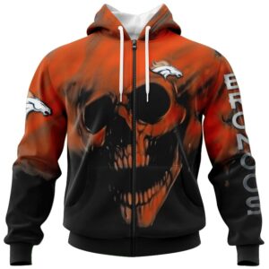Denver Broncos Skull Hoodies Custom Name & Number Gifts for Fans
