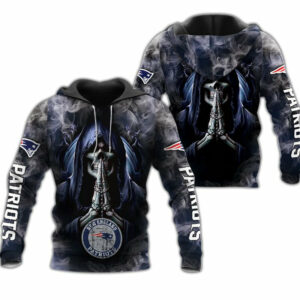New England Patriots Skull Hoodie Blackground Smoke Gifts for Fans