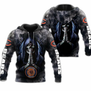 Chicago Bears Skull Hoodie Background Smoke Gifts for Fans