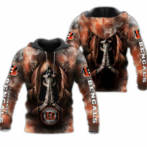 Cincinnati Bengals Skull Hoodies Background Smoke Gifts for Fans