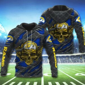 3D Skull Los Angeles Rams Hoodies Cheap Gifts for Fans