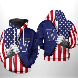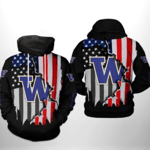 Washington Huskies Ncaa Us Flag 3D All Over Print Hoodie, Zip-Up Hoodie