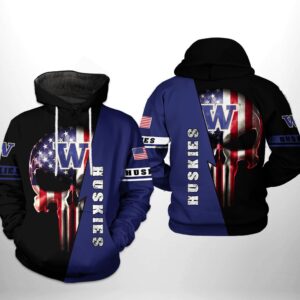 Washington Huskies Ncaa Us Flag Skull 3D All Over Print Hoodie, Zip-Up Hoodie