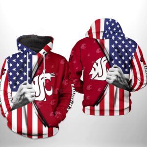 Washington State Cougars Ncaa Us Flag 3D All Over Print Hoodie, Zip-Up Hoodie