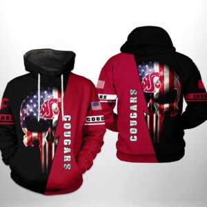 Washington State Cougars Ncaa Us Flag Skull 3D All Over Print Hoodie, Zip-Up Hoodie