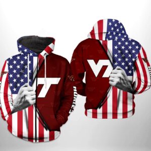 Virginia Tech Hokies Ncaa Us Flag 3D All Over Print Hoodie, Zip-Up Hoodie