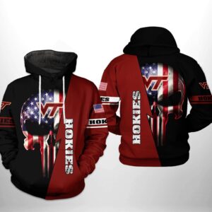 Virginia Tech Hokies Ncaa Us Flag Skull 3D All Over Print Hoodie, Zip-Up Hoodie