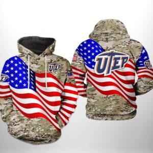 Utep Miners Ncaa Us Flag Camo Veteran 3D All Over Print Hoodie, Zip-Up Hoodie