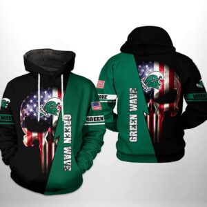 Tulane Green Wave Ncaa Us Flag Skull 3D All Over Print Hoodie, Zip-Up Hoodie