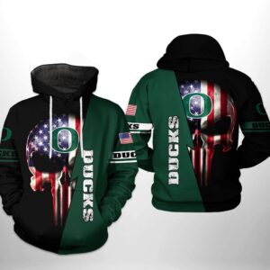 Oregon Ducks Ncaa Us Flag Skull 3D All Over Print Hoodie, Zip-Up Hoodie