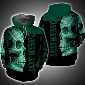 Oregon Ducks Skull 3D All Over Print Zip Hoodie Gifts For Ncaa Fans