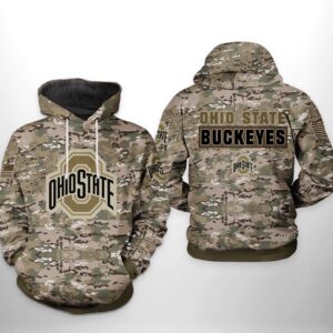 Ohio State Buckeyes Ncaa Camo Veteran 3D All Over Print Hoodie, Zip-Up Hoodie