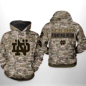 Notre Dame Fighting Irish Hoodie Camo Veteran 3D All Over Print Zip Hoodie Gifts For Ncaa Fans