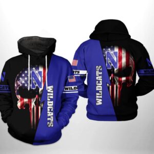 Northwestern Wildcats Ncaa Us Flag Skull 3D All Over Print Hoodie, Zip-Up Hoodie
