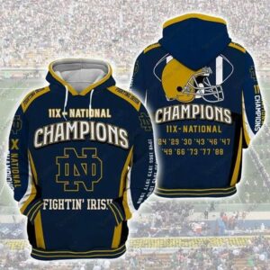 Notre Dame Fighting Irish 11X National Champions 3D All Over Print Zip Hoodie Gifts For Ncaa Fans