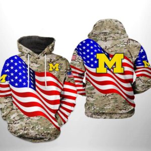 Michigan Wolverines Us Flag Camo Veteran 3D All Over Print Zip Hoodie Gifts For Ncaa Fans