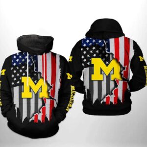 Michigan Wolverines With Flag American Distressed 3D All Over Print Zip Hoodie Gifts For Ncaa Fans