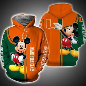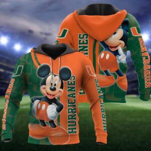 Mickey Mouse With Miami Hurricanes 3D All Over Print Zip Hoodie Gifts For Ncaa Fans