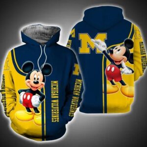 Mickey Mouse With Michigan Wolverines 3D All Over Print Zip Hoodie Gifts For Ncaa Fans