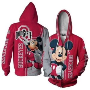 Mickey Ohio State Buckeyes 3D All Over Print Zip Hoodie Gifts For Ncaa Fans
